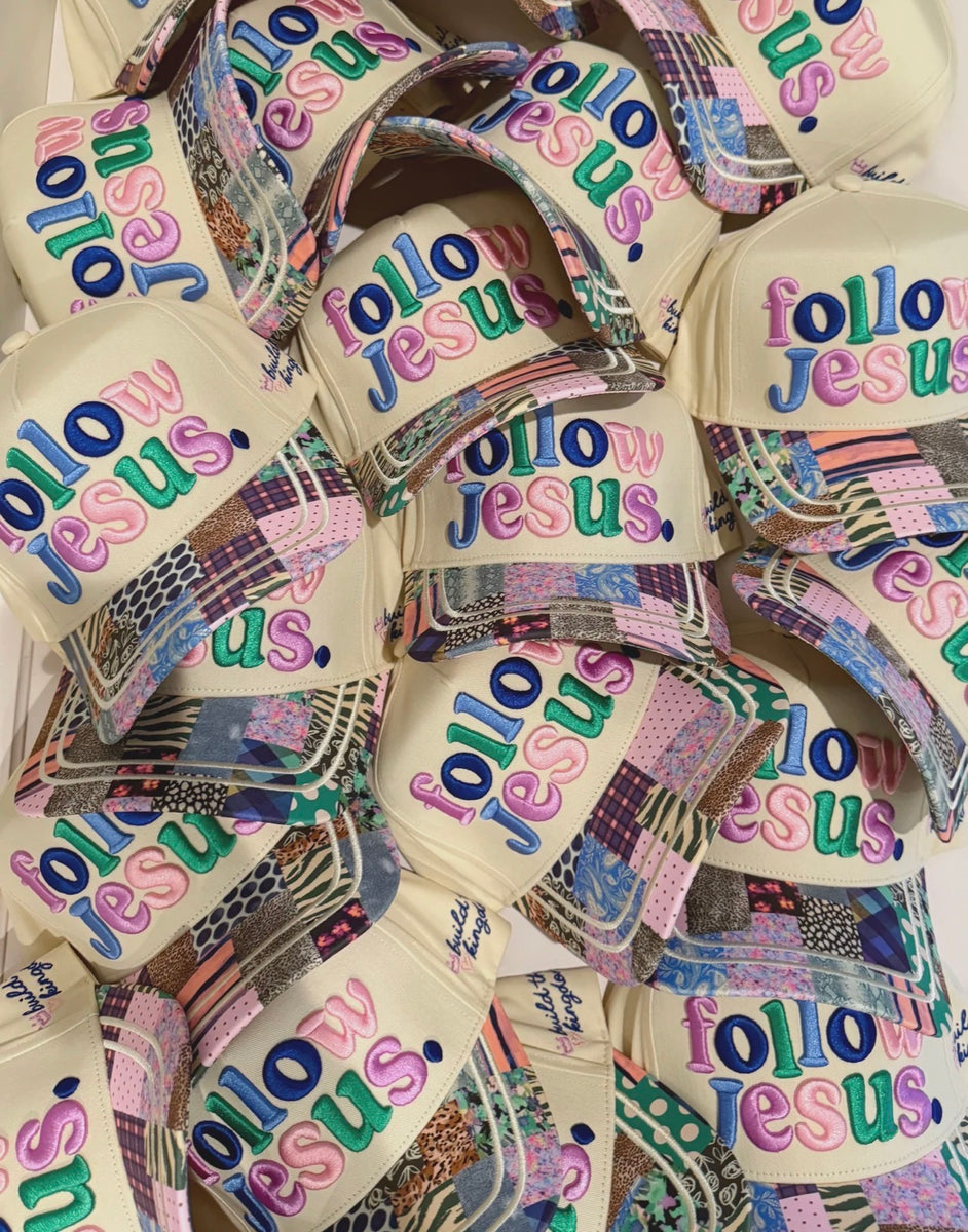Update your closet with this season's best. New arrivals including this adorable and so cool following Jesus trucker hat.
