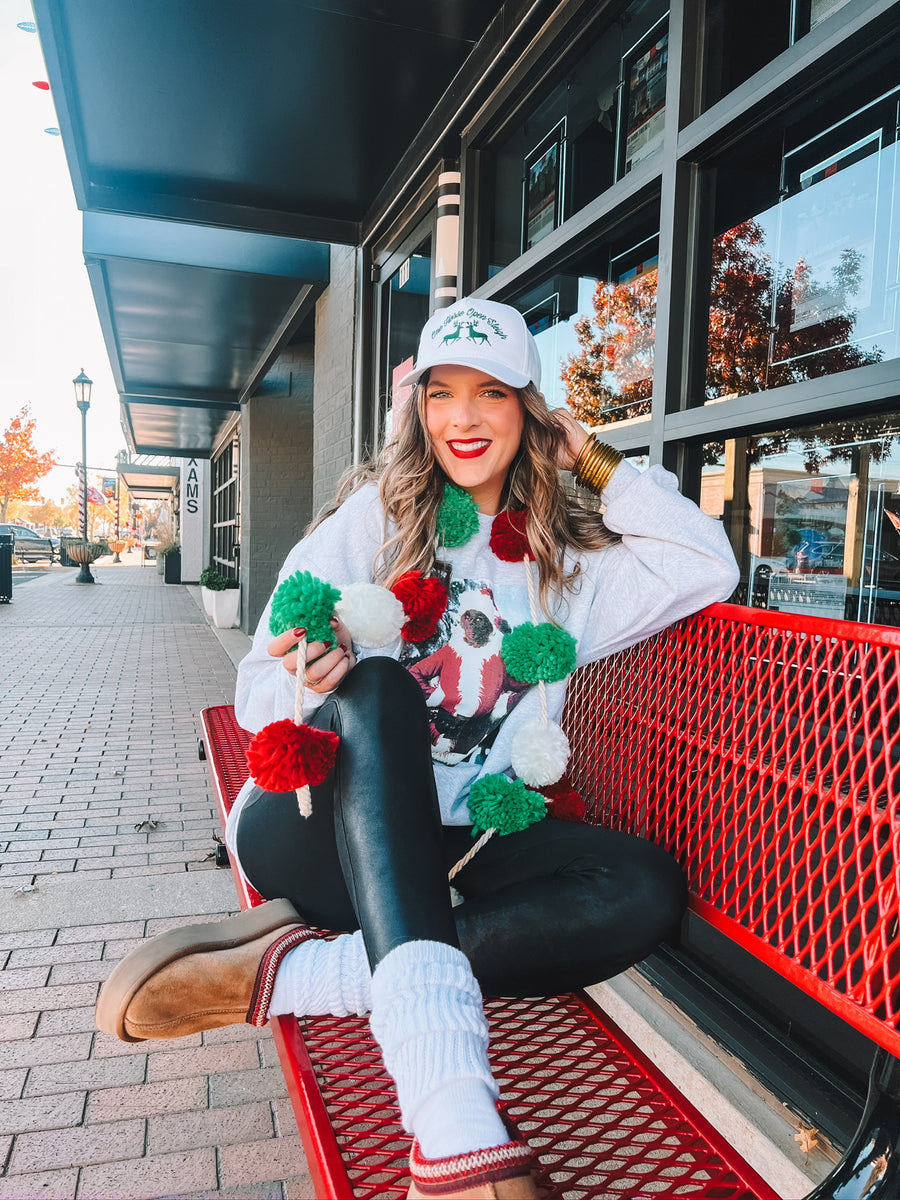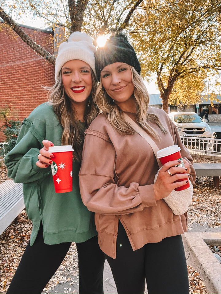 Falalala in love with our best selling Christmas sweatshirt. Our corded crews are a hit for a reason. With an oversized fit, you're sure to stay styling and in the Holiday spirit with one of our Merry corded pullovers.